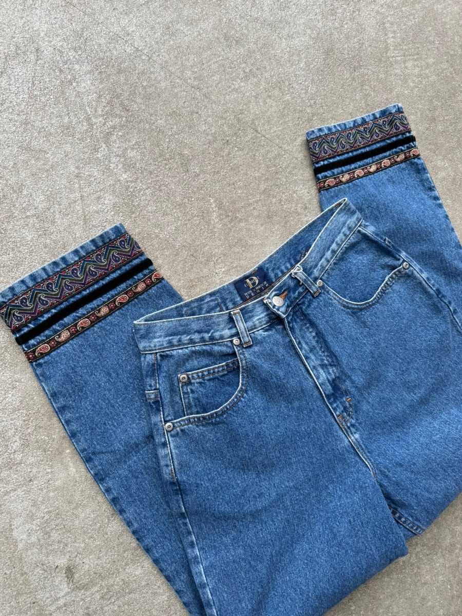 裾のデザインが特徴的なデニムパンツ。